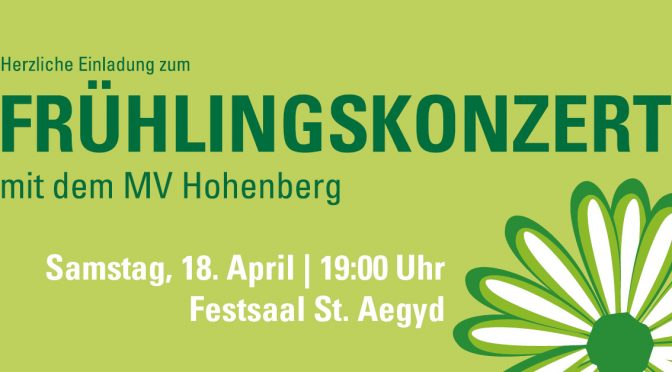 Aktuelle Beiträge Karten Frühlingskonzert 2026 30. März 2026 Lena Wir laden zum Frühlingskonzert 2026 am 18. April um 19:00 Uhr im Festsaal St. Aegyd. Kartenverkauf